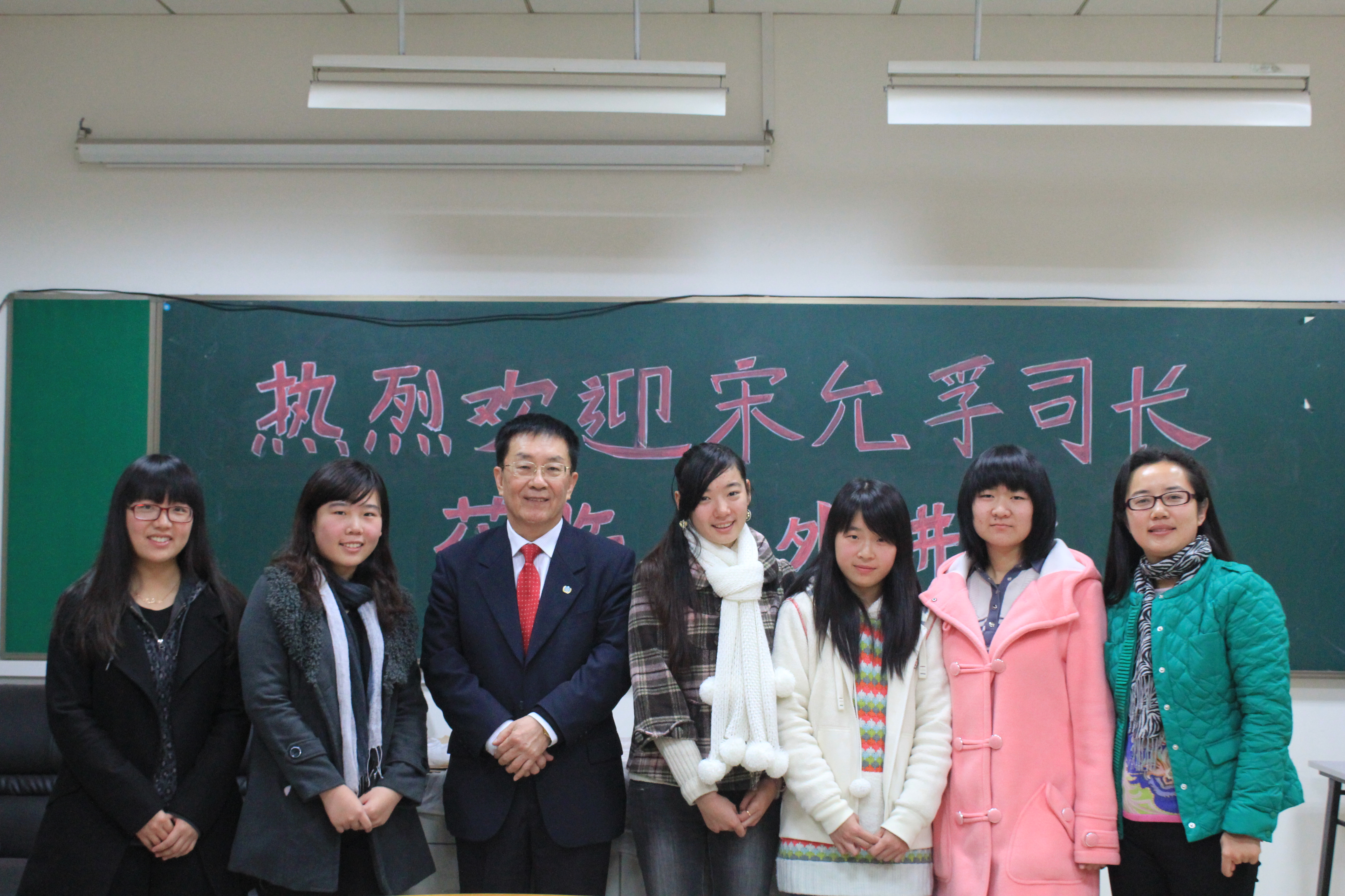 当天下午,宋允孚先生参观了松江校区,并接受了由国公班学生组成的国家级大学生创新创业训练计划项目“国际公务员人才市场需要、入选途径与基本素质要求研究”课题组成员的采访。采访后,宋允孚欣然为国际公务员人才实验班题词:“志存高远,脚踏实地,养精蓄锐,有所作为”,充分表达出他对国际公务员班学生的关心和期待。威尼斯欢乐娱人城1099为全体国际公务员班学生购买了《做国际公务员:求职、任职、升职的经验分享》一书,为学生开展研究学习提供指导。