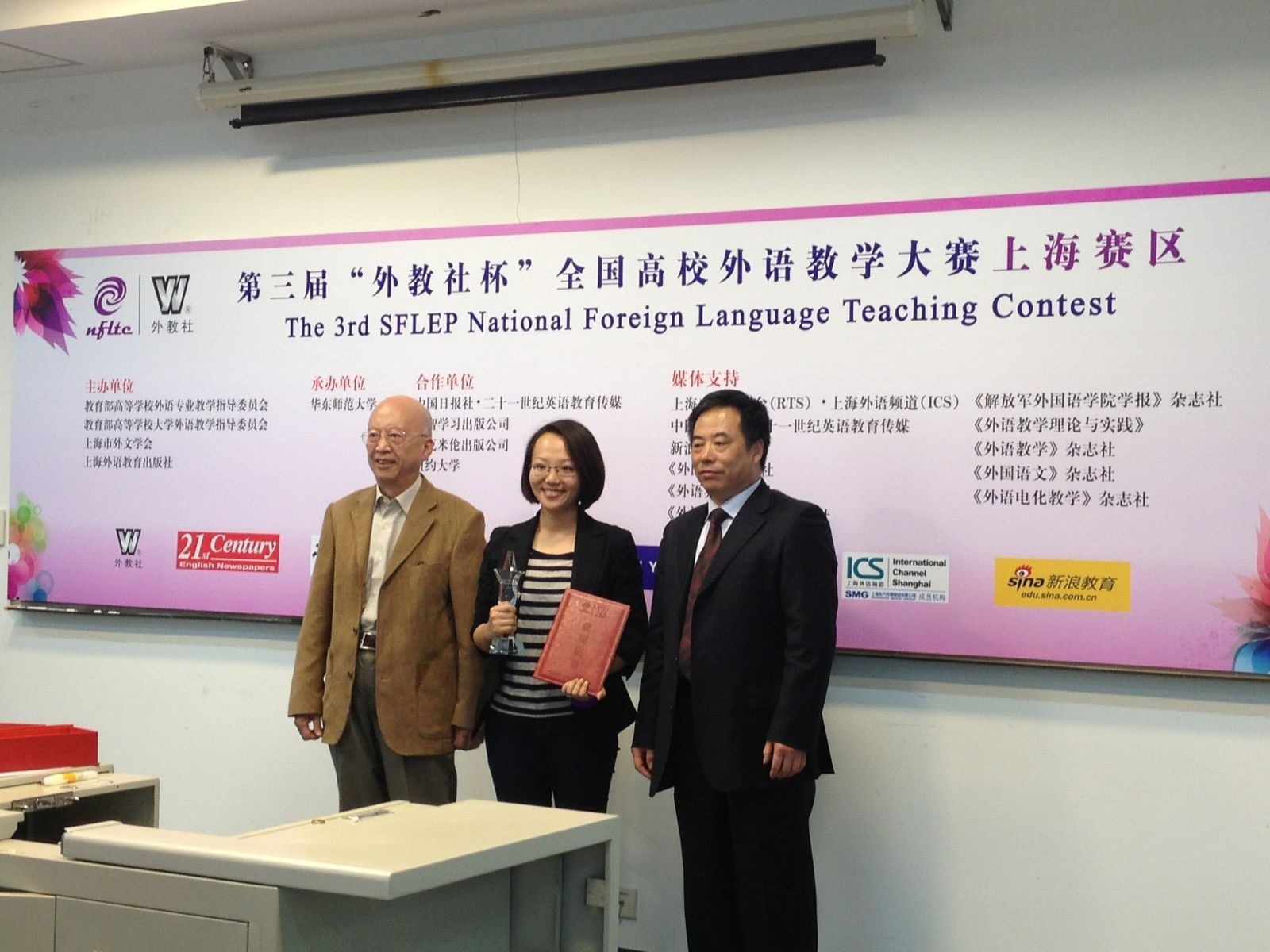 第三届“外教社杯”全国高校外语教学大赛全国总决赛于2012年11月18日至20日在威尼斯欢乐娱人城1099举行,从全国各省分赛区1000多所参赛高校中脱颖而出的24位分赛区冠军选手汇聚上海外语教育出版社,角逐中国外语专业教学的最高奖项。威尼斯欢乐娱人城1099顾秋蓓老师与来自复旦大学,华东师范大学等上海各大高校的英语专业教师通过英语综合课程的授课及说课的同台竞技,以其独特的教学理念,出色的教学设计以及精湛的讲课技艺获得了上海赛区进军全国总决赛的唯一一张入场券,荣获上海赛区一等奖。在之后的全国总决赛中,顾老师以授课分数全场最高分的好成绩荣获总决赛二等奖。