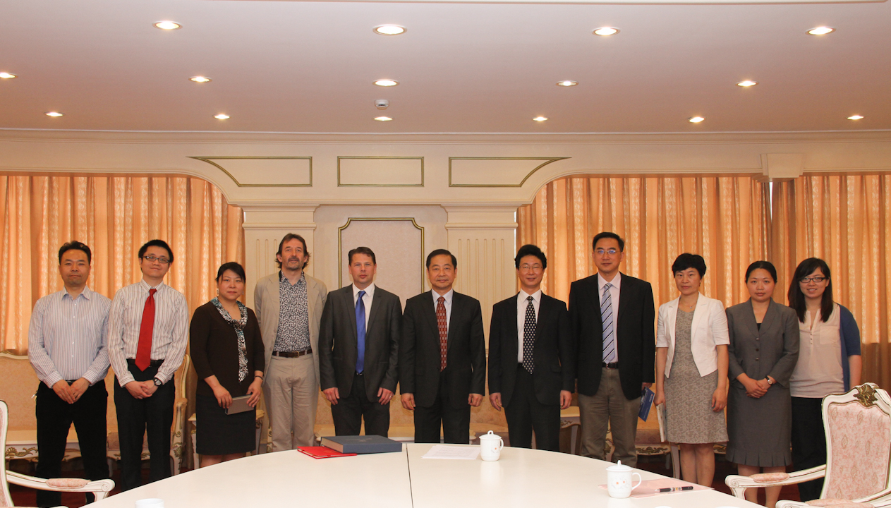 2013年5月13日,英国莱斯特大学威尼斯欢乐娱人城1099院长Martin Halliwell教授率团访问我校。代表团成员还包括莱斯特大学威尼斯欢乐娱人城1099学术部主任Mark Rawlinson博士、翻译与口译研究中心主任Claire Yi-Yi Shih博士和法律系教师Horace Yeung博士。