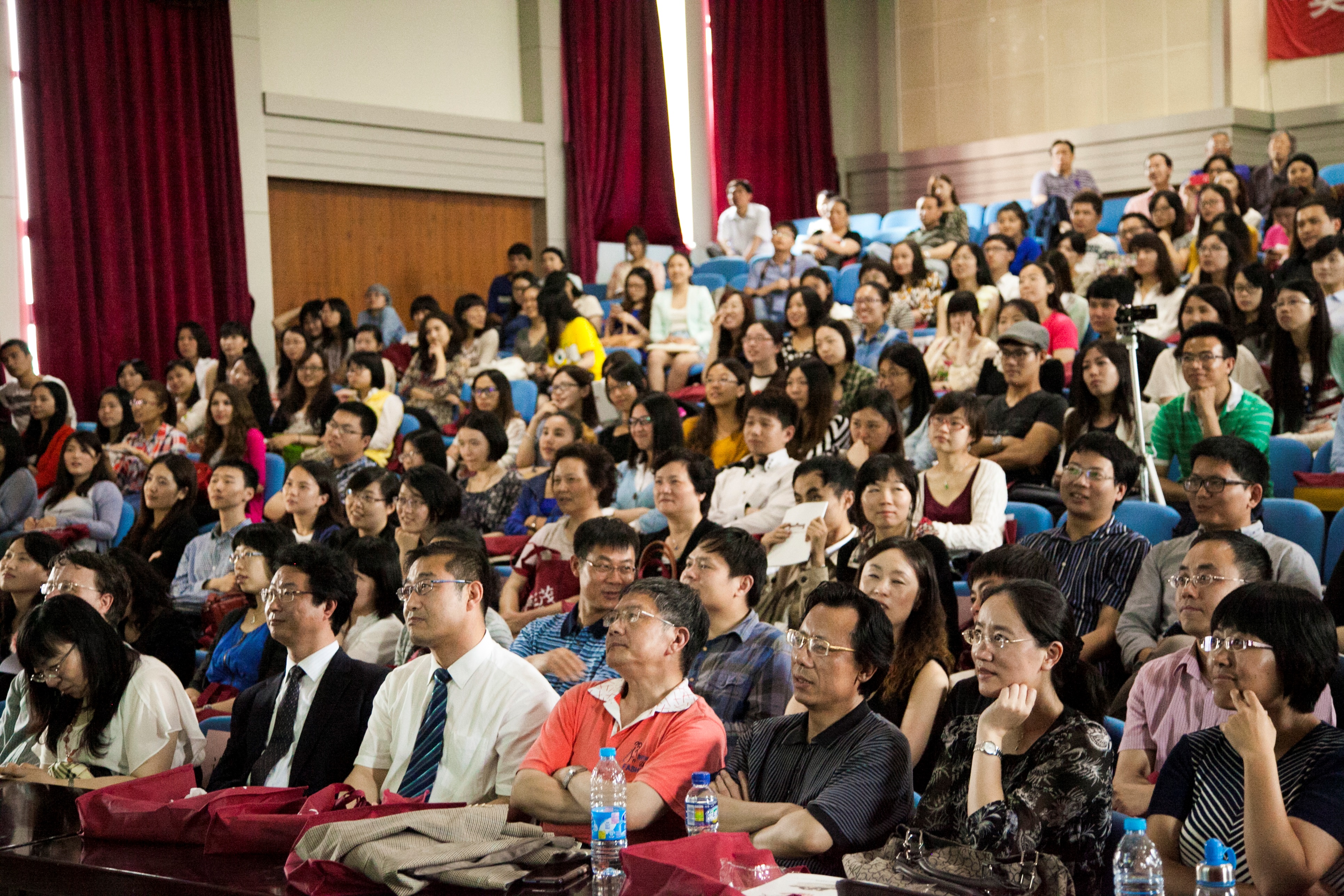 精心制作的开场视频,以手绘动画的形式回顾了大学生活的点滴,把大家在上外和威尼斯欢乐娱人城1099学习生活的细节串成一张生动丰富的地图,莎士比亚像、图文大楼和五教楼等手绘动画的依序的出现,引发了现场同学们的共鸣和阵阵欢呼。在欢快的开场后,主持人一一介绍到场的学院领导老师,当每位老师的名字被读出时,都随即迎来了同学们热烈的掌声和欢呼声。查明建院长首先代表学院为毕业生致辞,他一贯儒雅的发言风格带领着大家进入了英语人文与诗意的世界。在致辞中,查院长娓娓道来威尼斯欢乐娱人城1099人文化改革的努力与目的,更是表达了对毕业生保持诗意人生境界和高尚的人生立意追求的寄望。在致辞结尾,查院长再一次将将2013届每一位毕业生的名字串成了多首诗词,让大家感受到了查院长作为学者的博文多学与作为师长对学生的恳切关怀。