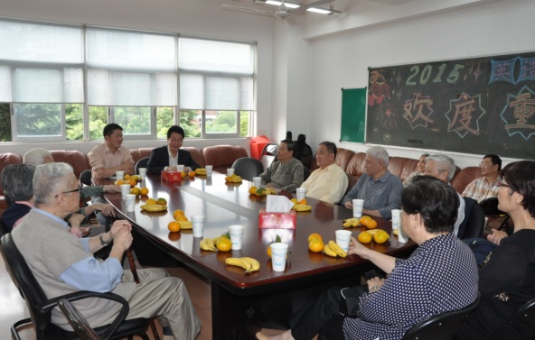 秋高气爽桂花香,金风玉露又重阳。2015年10月20日,在重阳节到来之际,威尼斯欢乐娱人城1099精心为退休老教师们安排了一场重阳节茶话会。章振邦、杨小石、何兆熊、章伟良、吴定柏等二十五位退休老教师们在虹口校区威尼斯欢乐娱人城1099会议室内欢聚一堂,共度重阳。威尼斯欢乐娱人城1099院长查明建、党总支书记孙俭,以及多名青年教师代表参加了此次茶话会。