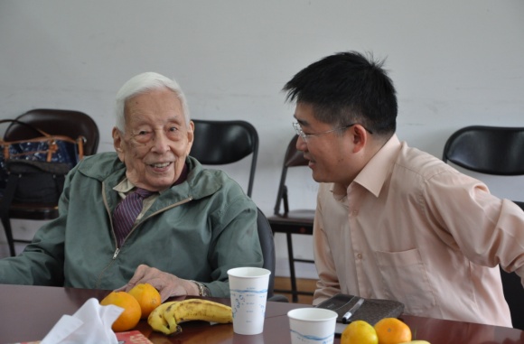 章振邦老教授就是其中的典范之一。茶话会上,九十八岁高龄的章教授对学院率先扭转英语专业以语言技能为中心的局面,推行“人文化”教改的举措极为赞赏,并对学院今后的发展提出了诸多建议,强调紧抓科研、科研与教学相结合、传承先辈卓越的科研成果等等,思路明晰、言辞中肯。随后,解伯昌、吕光旦等老教师们相继对学院的多方面的工作进行了解和慰问,并提出他们的见解和建议,并与在场的王欣、孙珊珊、孙艳等青年教师代表们亲切交流。老当益壮,老教师们不忘教育事业,时刻关注校院的发展建设的认真态度和热忱精神,体现了老教师们对学院的关心和作为教育工作者的拳拳用心。学院领导和青年教师们纷纷感慨要向各位前辈学习,发扬前辈们的优良风范,也祝愿他们身体健康,幸福长寿。