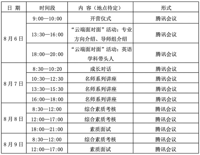 本次夏令营期间所有活动均通过网络平台进行,主要采取直播加视频会议的方式。