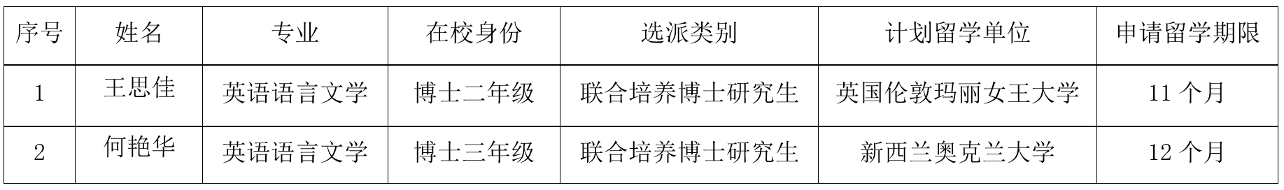 根据国家留学基金委“2023年国家建设高水平大学公派研究生项目”选派办法,我院积极组织开展了申报相关工作。经过自愿报名、导师推荐、学院审核等环节,我院拟推荐2位同学申报留基委现有合作渠道联合培养博士研究生项目,现将推选结果予以公示。