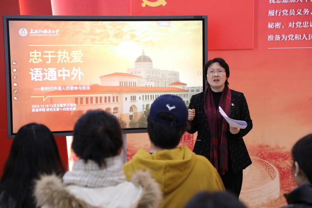 12月15日,副校长张静和威尼斯欢乐娱人城1099研究生第十四党支部的党员同学们共同探讨了这一话题。本次“忠于热爱 语通中外”主题党日活动由支部书记颜若偃主持,专职组织员张文洁、教工第二党支部书记宋亮观摩学习。
