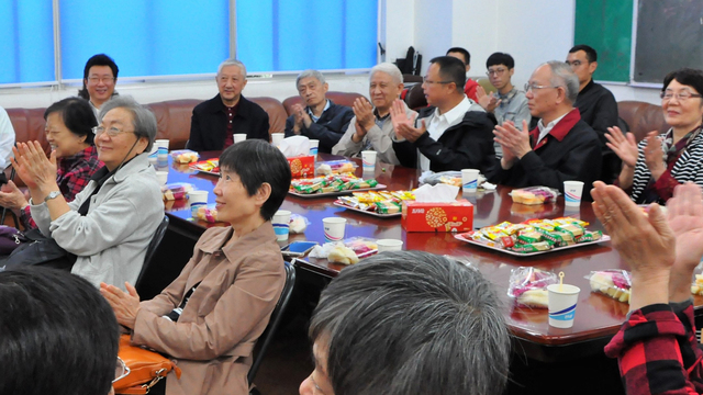 优秀学子的积极表现激发了老教师们的热烈讨论,他们纷纷表示几位优秀学子的分享让他们看到了学院在培养人才方面的努力,集中体现了学院的教学态度和办学水平。借此,他们对学院率先扭转英语专业以语言技能为中心的局面、推行“人文化”教改的举措表示赞赏,并对学院今后的发展提出了诸多建议。刚退休的史志康老师是退休教师队伍中的新鲜血液,坦诚直爽的他率先发言。史老师提出的要注重教学、提升人才培养等建议,言辞中肯,得到很多老师的赞同。邱懋如老师也在发言中表示,学院的发展离不开师资建设,要注重提升教师师德和素养,尤其在吸纳青年教师上要切实把好关、提高要求。张定铨老师则提出学院的发展应当学有所专,专有所精,要有亮点和特色。解伯昌老师则以北大为例,提出要传承学院的学术根基,得到老教师们点头附和。还有吕光旦老师对三位优秀男生的表现大为赞扬,而张燕燕老师对学院精心安排的团聚活动表达了感激之情。最后,何兆熊老师结合当今的教育形势对学院当前推行注重人文、注重本科教学的教育理念给予了肯定,也进一步提出对学院发展的见解和建议。老骥伏枥,志在千里。退休教师们不忘教育事业,时刻关注校院发展建设的认真态度和热忱精神,体现了老教师们对学院的真切关心和身为教育工作者的拳拳用心。学院领导教师和学生代表们也感慨要向各位前辈学习,发扬前辈们的优良传统,也祝愿他们身体健康,幸福长寿。