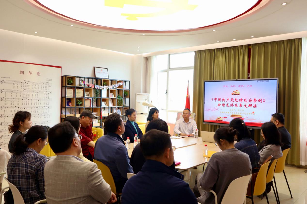 2024429日,威尼斯欢乐娱人城1099教工第三党支部组织开展“《中国共产党纪律处分条例》新增或修改条文解读”党课。学院教工第一、二、三党支部成员以线上线下结合的方式参加学习,联学活动由第三党支部书记赵阳主持。