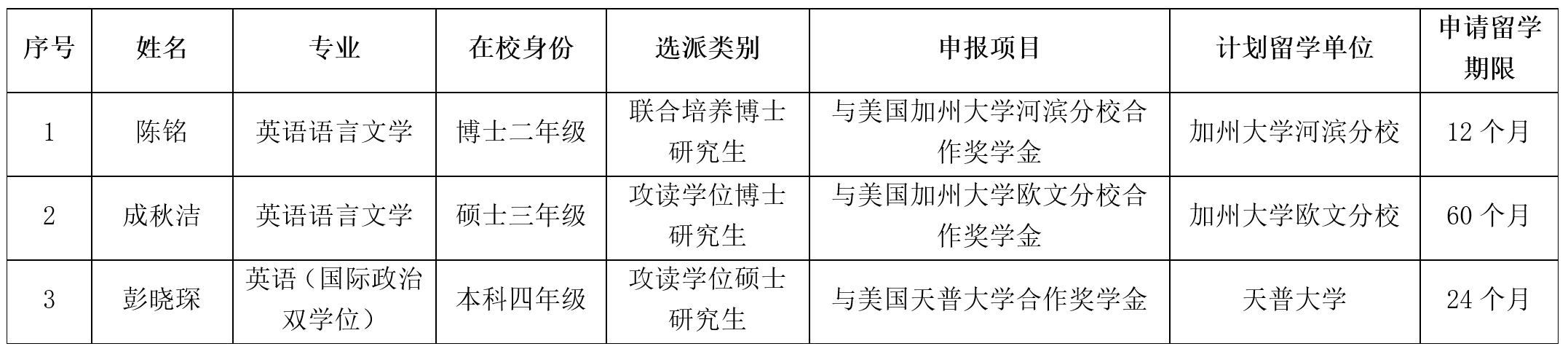 根据国家留学基金委“2025年部分与美国合作奖学金项目人员遴选工作启动”的通知,我院积极组织开展了申报相关工作。经过自愿报名、导师推荐、学院审核等环节,我院拟推荐3位同学申报2025年国家留基委与美国合作奖学金项目,现将推荐名单予以公示。