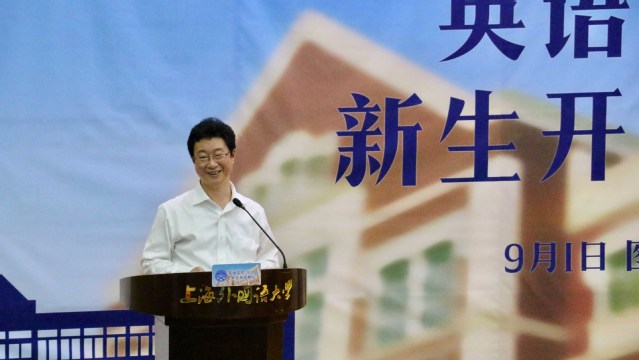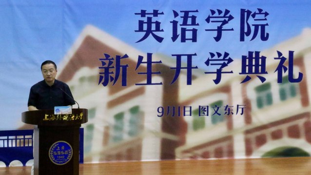 刘焱老师代表本科生班导师发言。他首先表达了对同学们进入上外、开始新旅程的欢迎与祝福。接着,他详细介绍了学院的班导师制度。本科生导师制是英院的优良传统,坚持做到传道、授业、解惑“一杆清”。学院聘请经验丰富、认真负责的教师担任导师,指导学生的学业和品行,在引导他们进入专业学习的同时,关心学生的全面成长。刘老师对大一各个班级的班导师一一作了介绍,希望新生们能在班导师的引领下,尽快适应大学新生活,融入英院大家庭,学有所获,学有所成。