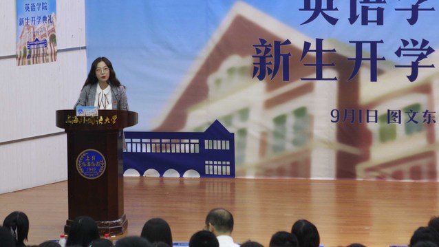 2019级本科英语专业王去非同学作为本科新生代表发言。她代表全体本科生向耐心答疑解惑的老师们和暖心分享经验的学长学姐们表示了衷心的感谢。随后,她表示,作为以“讲述中国故事,分享中国智慧;观察世界风云,贡献国别区域全球知识”为责任的上外人,在拥有一个逐梦舞台的同时,也肩负着向世界诠释中国,维护祖国权益的使命。希望能和同学们一起,以“格高志远、学贯中外”的校训严格要求自己,为实现心中的理想而努力奋斗。