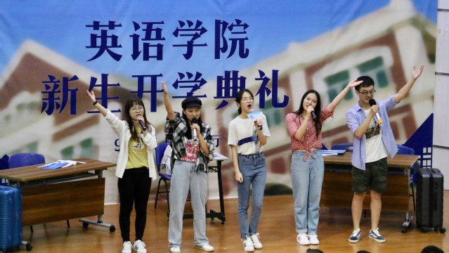 典礼在热情洋溢的歌舞表演中拉开序幕,五名高年级同学为新生演唱了一首改编的英文歌曲《Welcome to SISU》。他们用充满着激情与朝气的歌声、散发着热情与活力的表演,向2019级新生们表达了最热切、最真挚的欢迎。